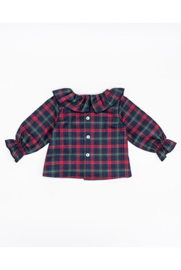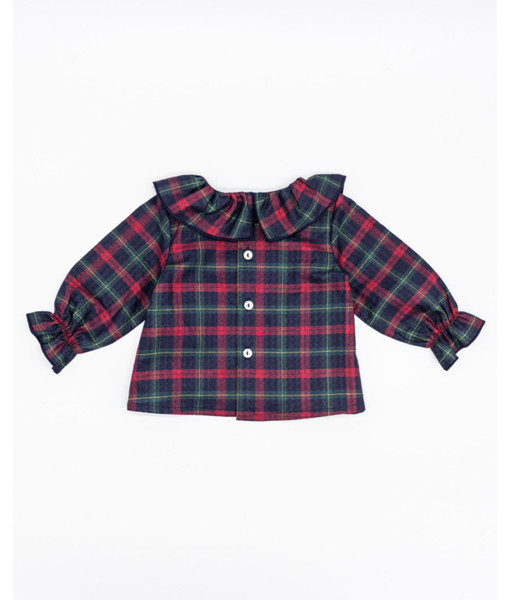 BLUSA CUELLO VOLANTE POPELÍN TARTAN ROJO Y NAVY