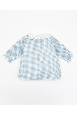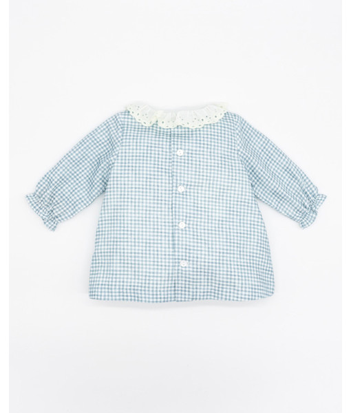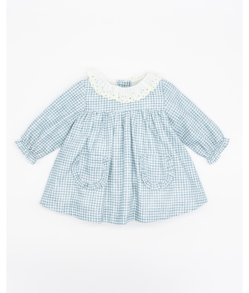 VESTIDO BEBÉ VIELLA VICHY AZUL CON BOLSILLOS Y CUELLO BORDADO