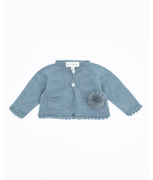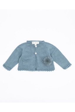 CHAQUETA PUNTO ALGODÓN LANA MERINO POMPÓN PELO ECOLÓGICO