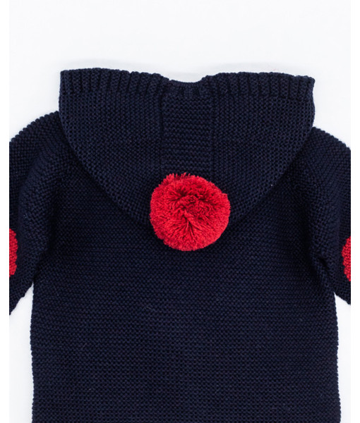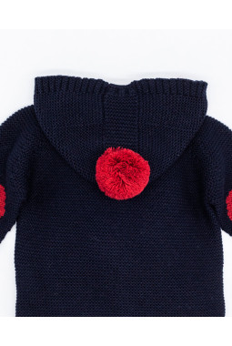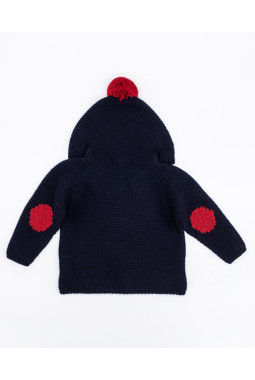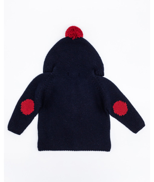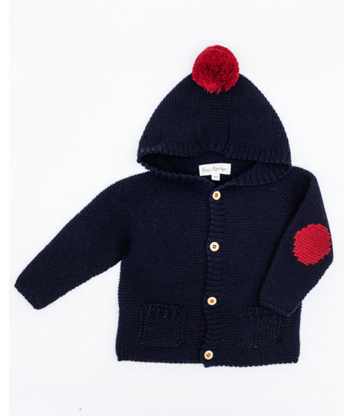 CHAQUETA PUNTO CAPUCHA LANA MERINO CON POMPÓN Y CODERAS NAVY