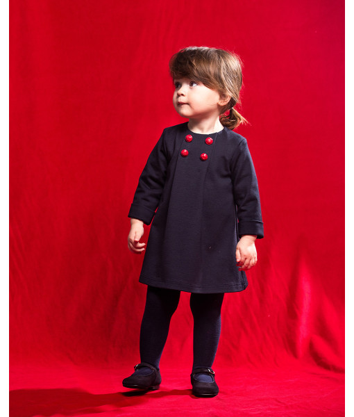 VESTIDO MINI PUNTO ROMA NAVY BOTONES METAL ROJO