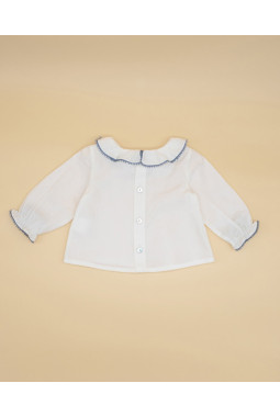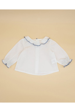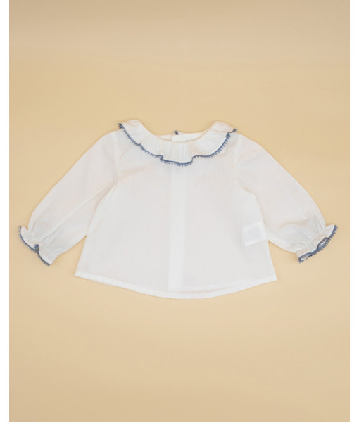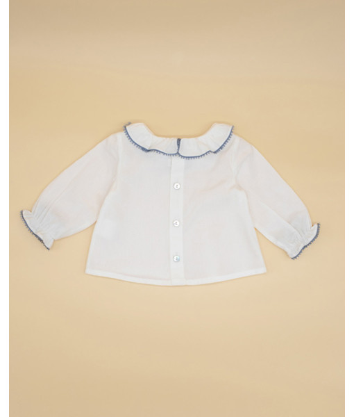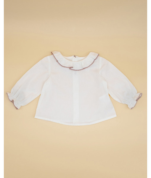 BLUSA PERCAL CRUDA CUELLO VOLANTE PUNTILLA COLOR