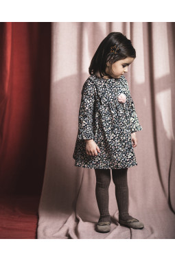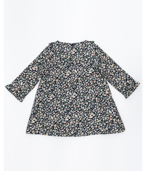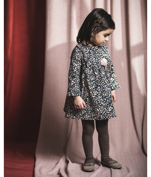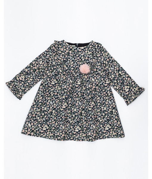 VESTIDO VIELLA FLORES NEGRO POMPÓN PELO ECOLÓGICO
