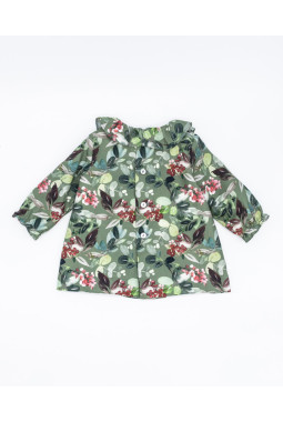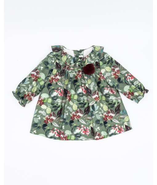 VESTIDO MINI VIELLA FLORES OLIVA POMPÓN PELO ECOLÓGICO