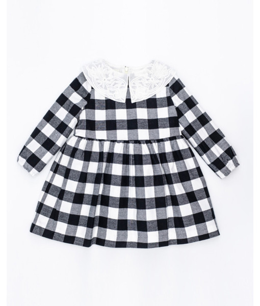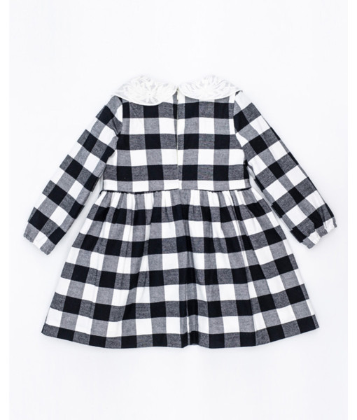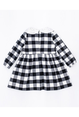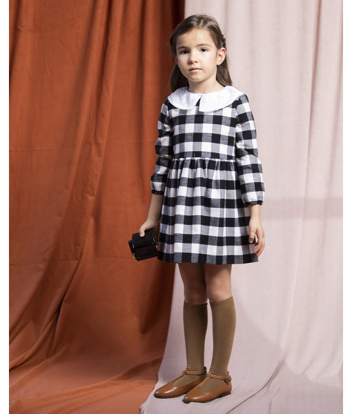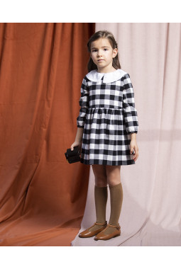 VESTIDO TWILL CUADRO BLANCO Y NEGRO CUELLO BORDADO