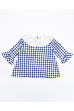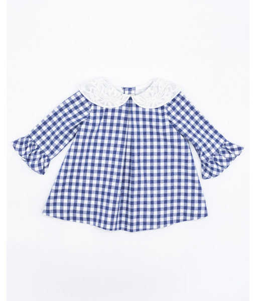 VESTIDO VIELLA CUADRO VICHY AZUL CUELLO BORDADO