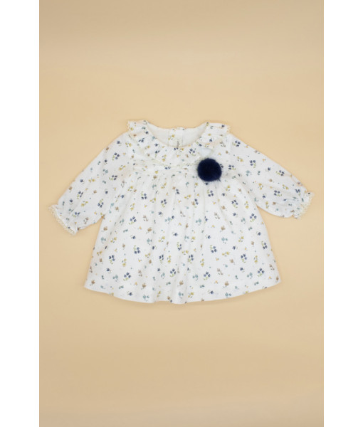 VESTIDO BEBÉ POMPÓN FLOR AZUL