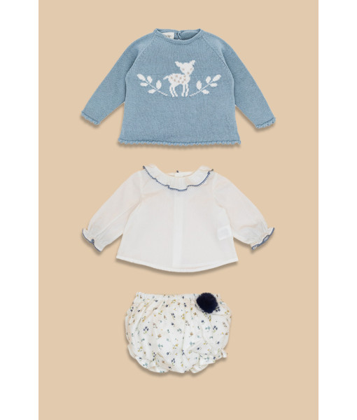 BLUSA, JERSEY Y RANITA FLOR AZUL BEBÉ