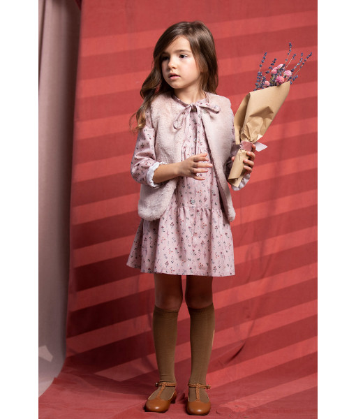 CHALECO PELO ECO Y VESTIDO FLOR BOTÁNICA ROSA