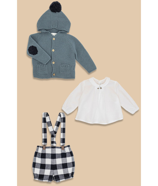 CHAQUETA, CAMISA Y BERMUDA CUADROS NEGROS