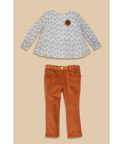 BLUSA FLOR Y PANTALÓN PITILLO TEJA