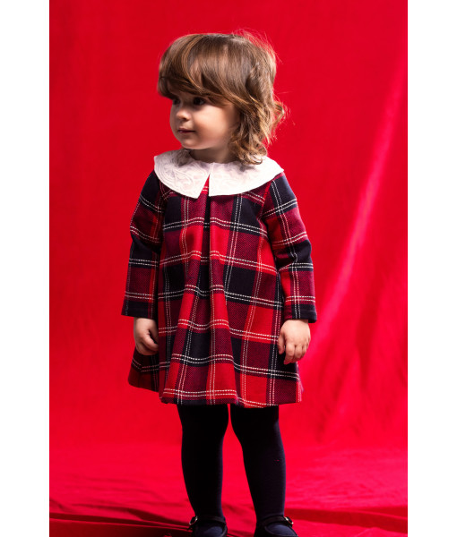 VESTIDO MINI CUADROS TARTAN LANA ROJO
