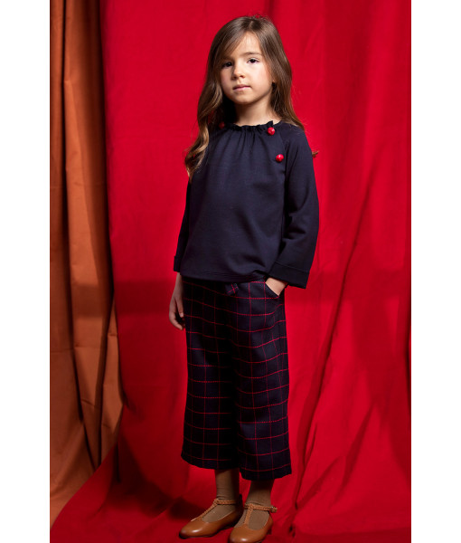 SUDADERA PUNTO ROMA Y PANTALÓN ANCHO CUADROS FRANELA ROJO Y NAVY