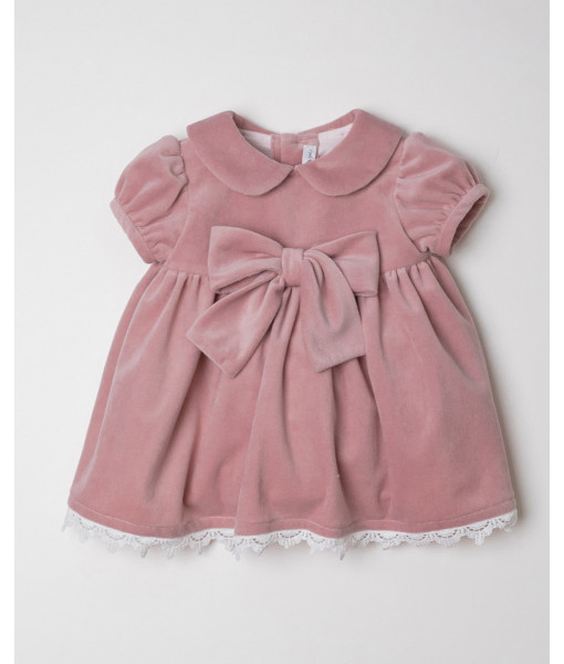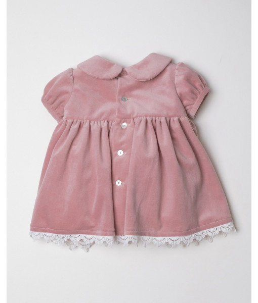 VESTIDO MINI LAZADA TERCIOPELO ROSA CON PUNTILLA
